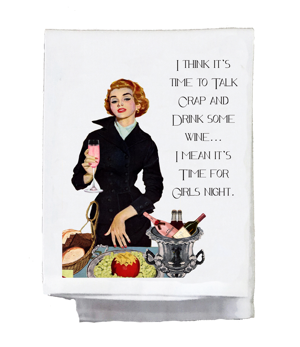 Sassy Girl, Move Over Coffee This Is a Job for Alcohol. Funny, Vintage Photo Kitchen Towel