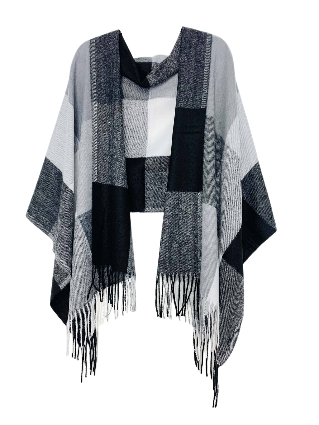 Softer Than Cashmere Color Block Blanket Wrap: Black-White