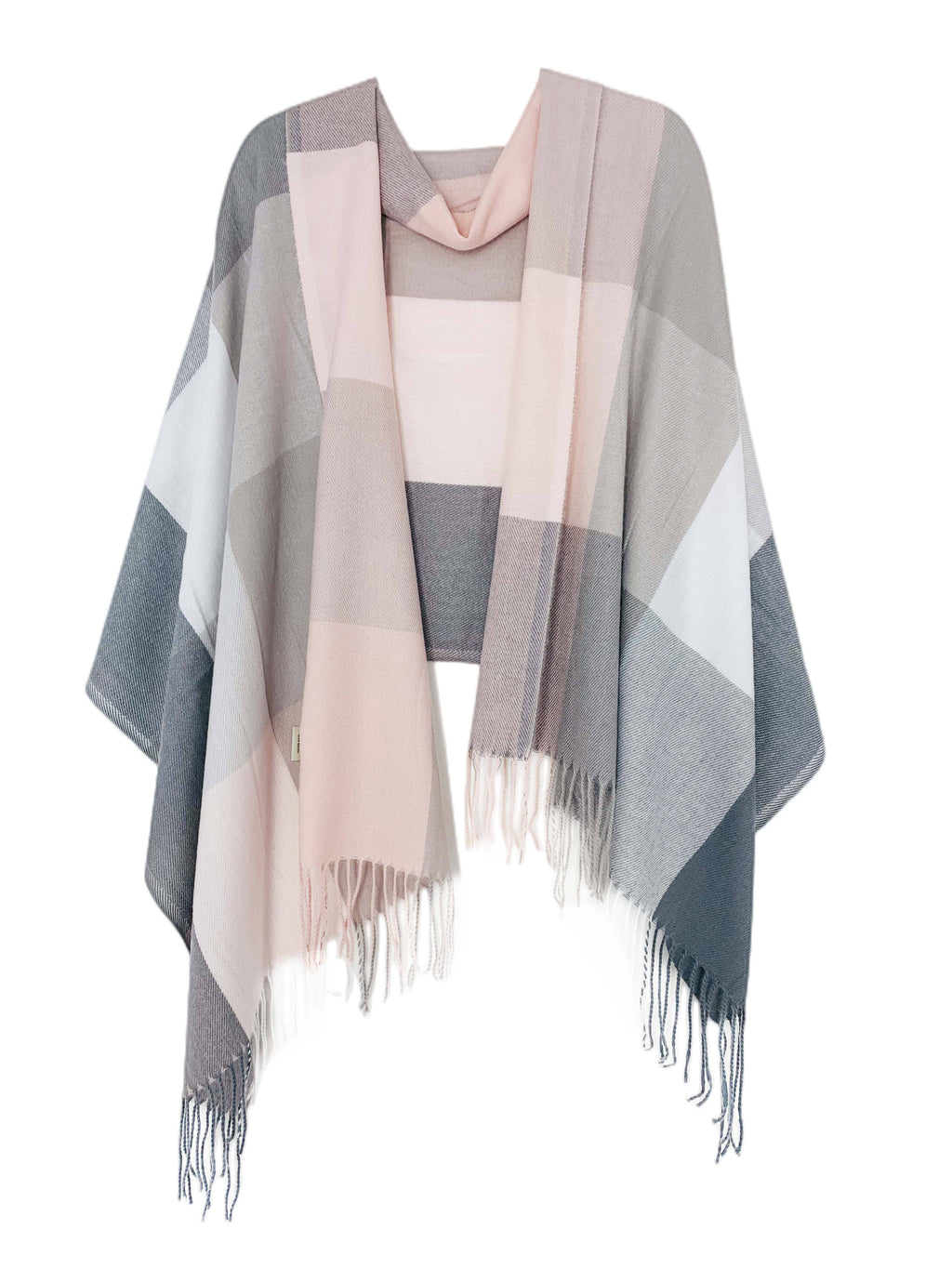 Softer Than Cashmere Color Block Blanket Wrap: Grey-Pink